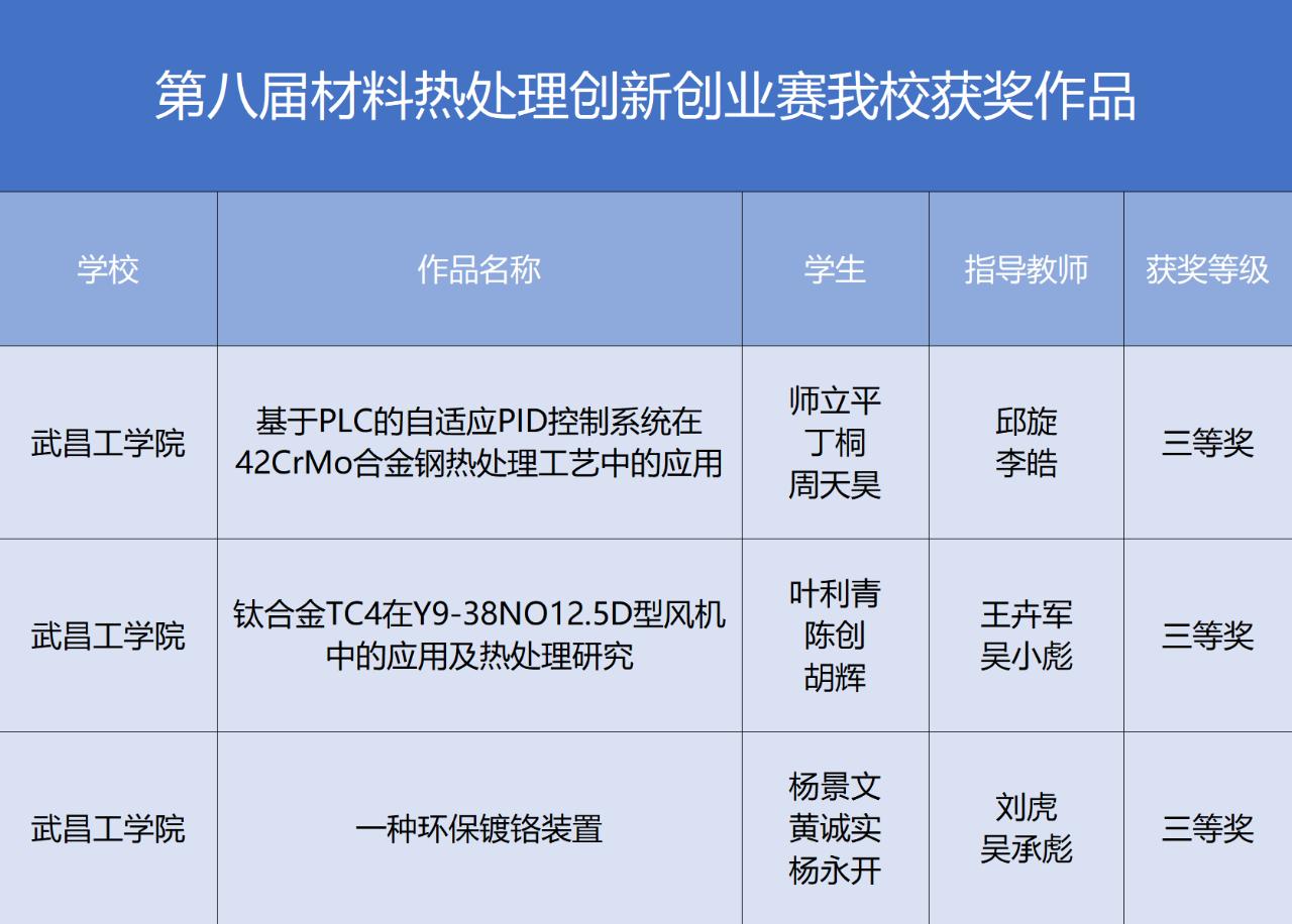 据悉,中国大学生材料热处理创新创业大赛是由中国机械工程学会主办的一项全国性学科竞赛,2018年纳入中国机械工程学会创新创意大赛系列赛事,是中国高等教育学会《全国普通高校大学生竞赛排行榜内竞赛项目名单》中重要的国家级科技创新竞赛。